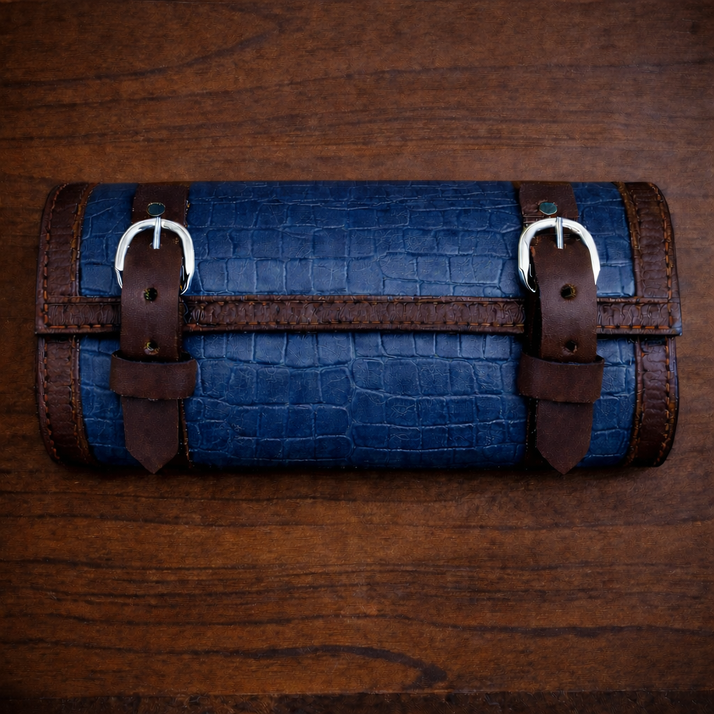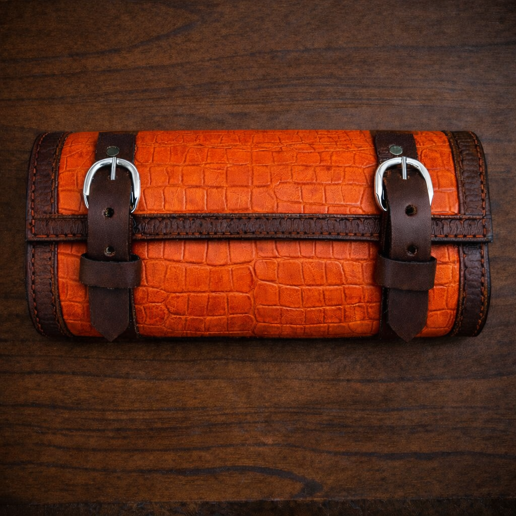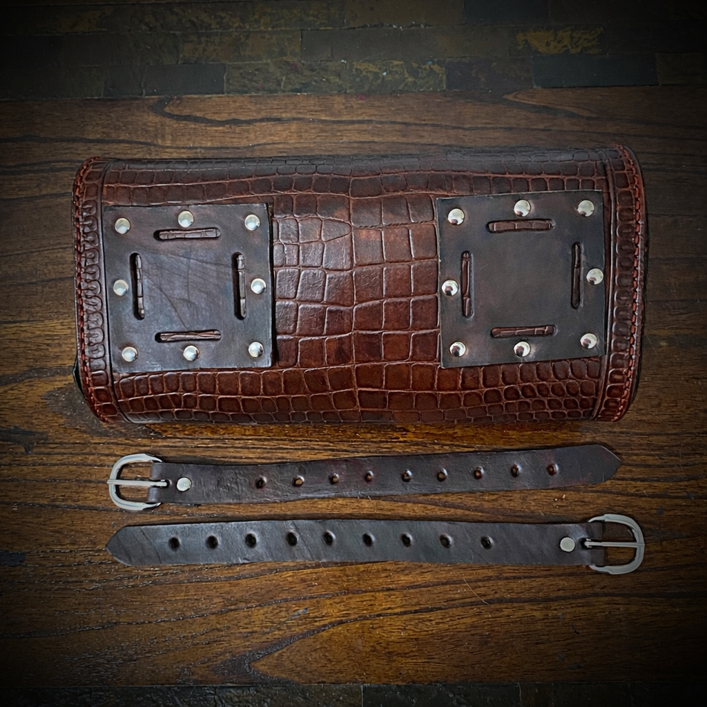 Tool Bag for Motorcycles - Alligator Print Leather, On Brown Leather
