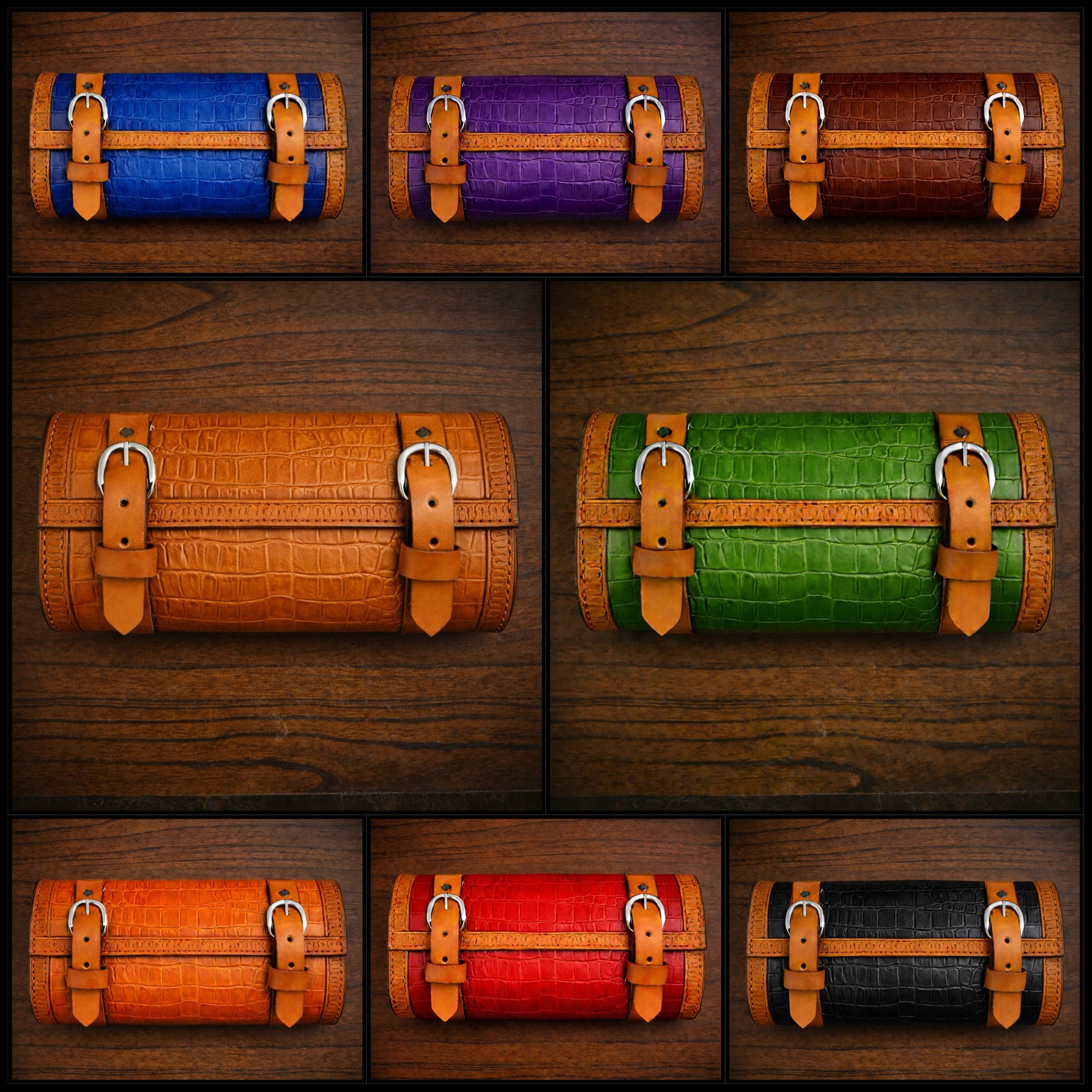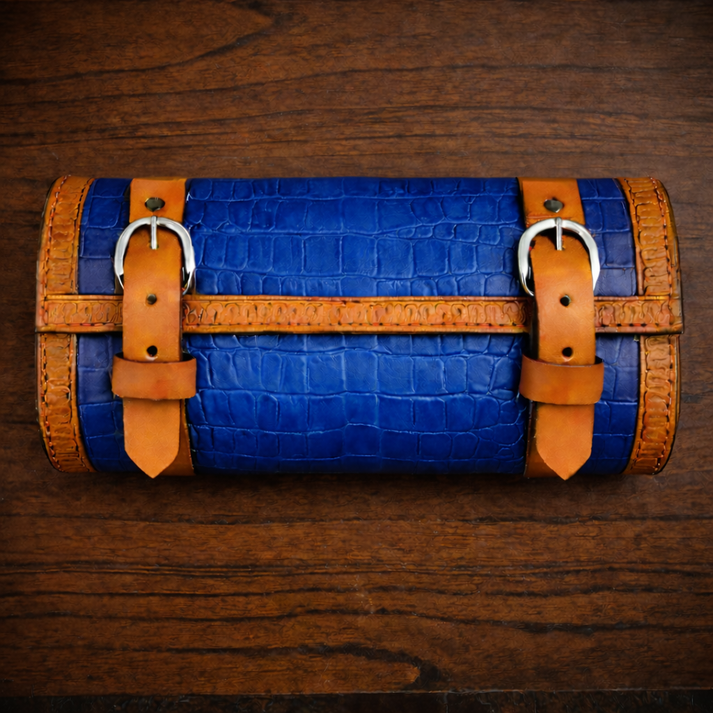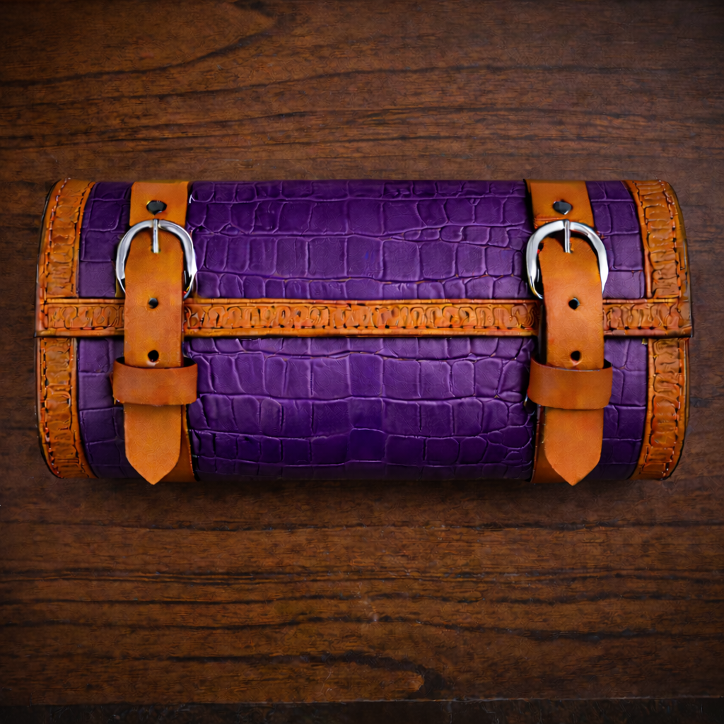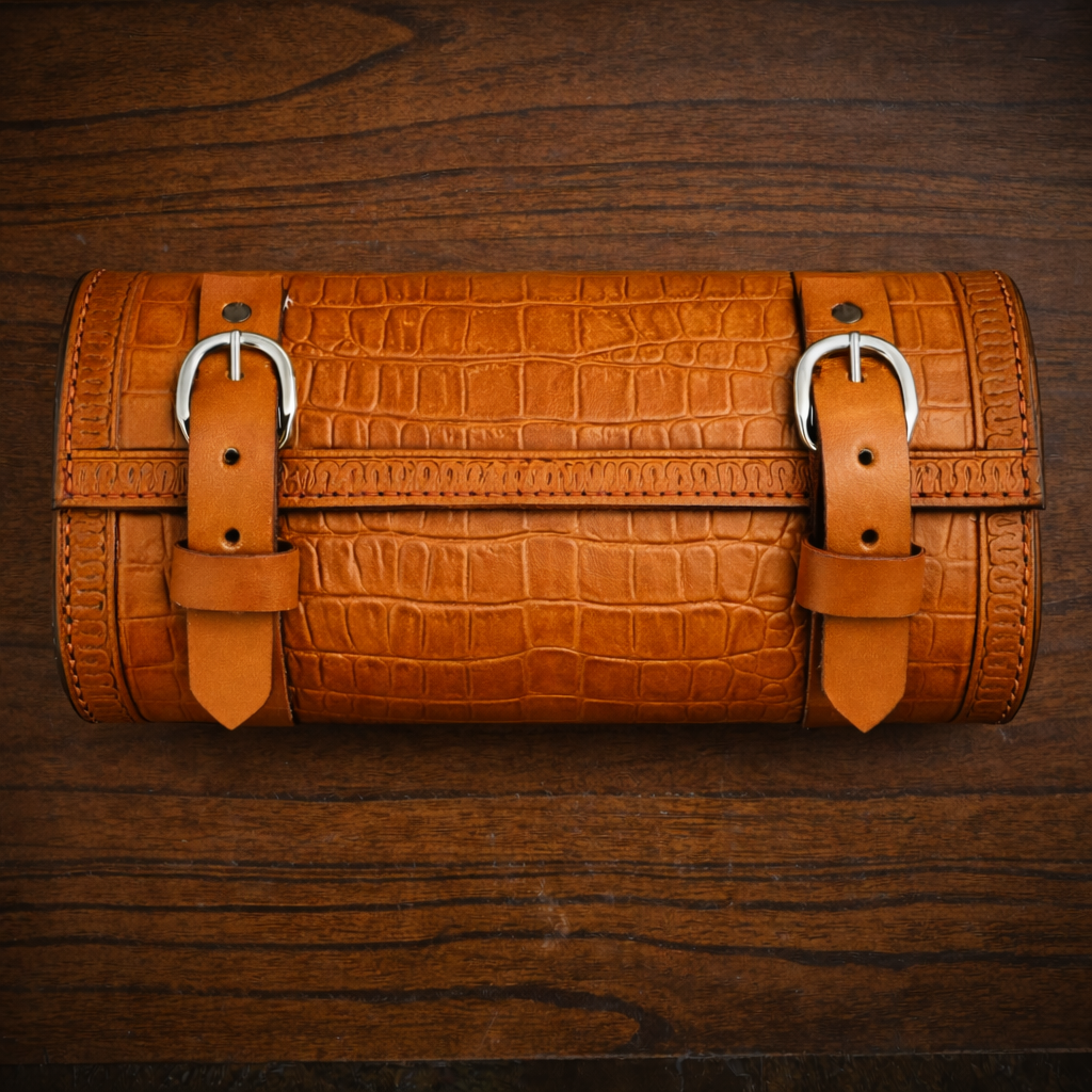 Tool Bag for Motorcycles - Alligator Print Leather, On Indian Tan Leather