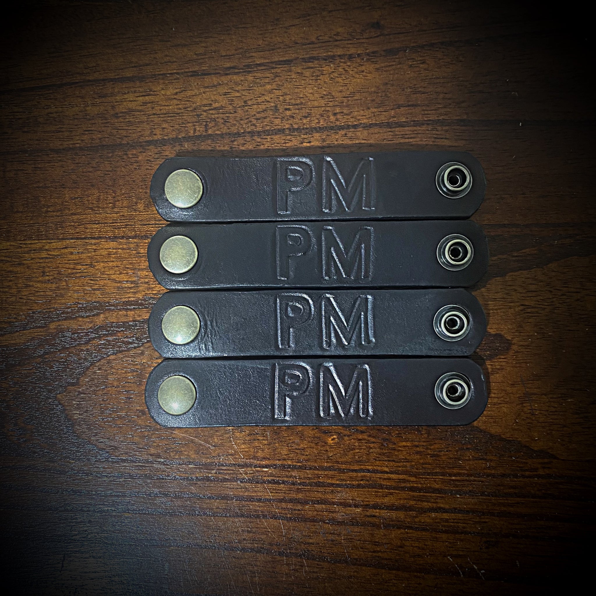 Made from 10-11oz Herman oak leather with button snaps. Sold as a set of 4.