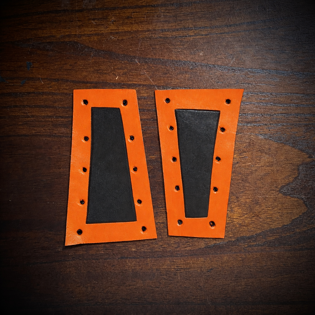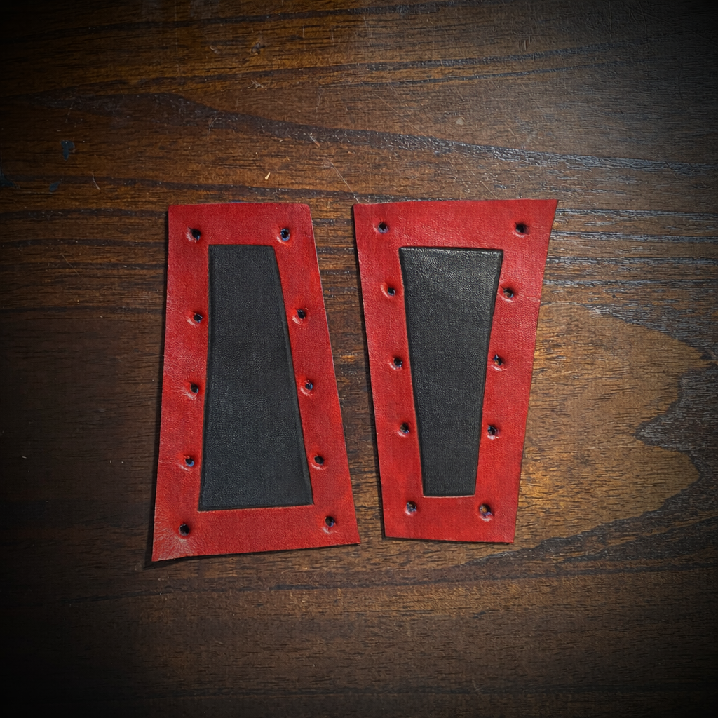 Made from 3-4oz weight leather. With leather lace to tie them on the levers.