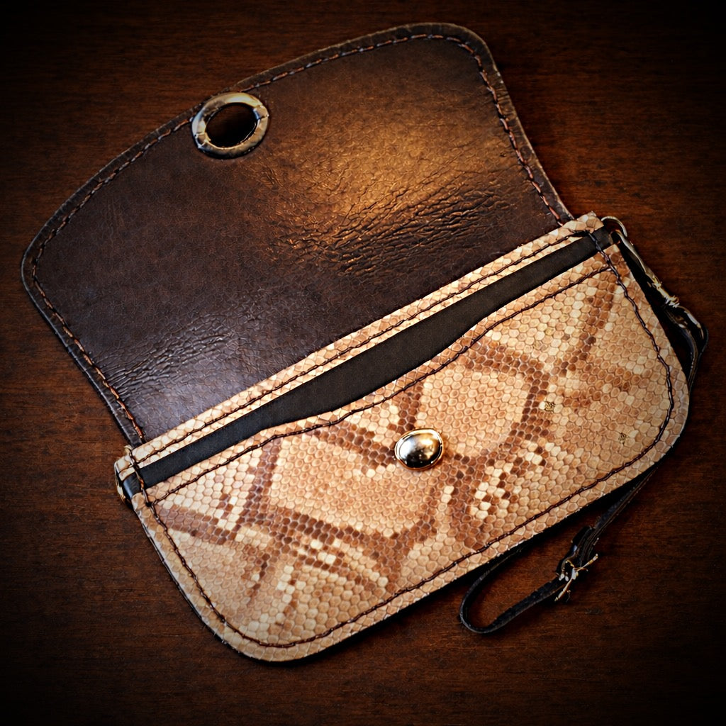 Made from genuine python leather and cow on the inside.