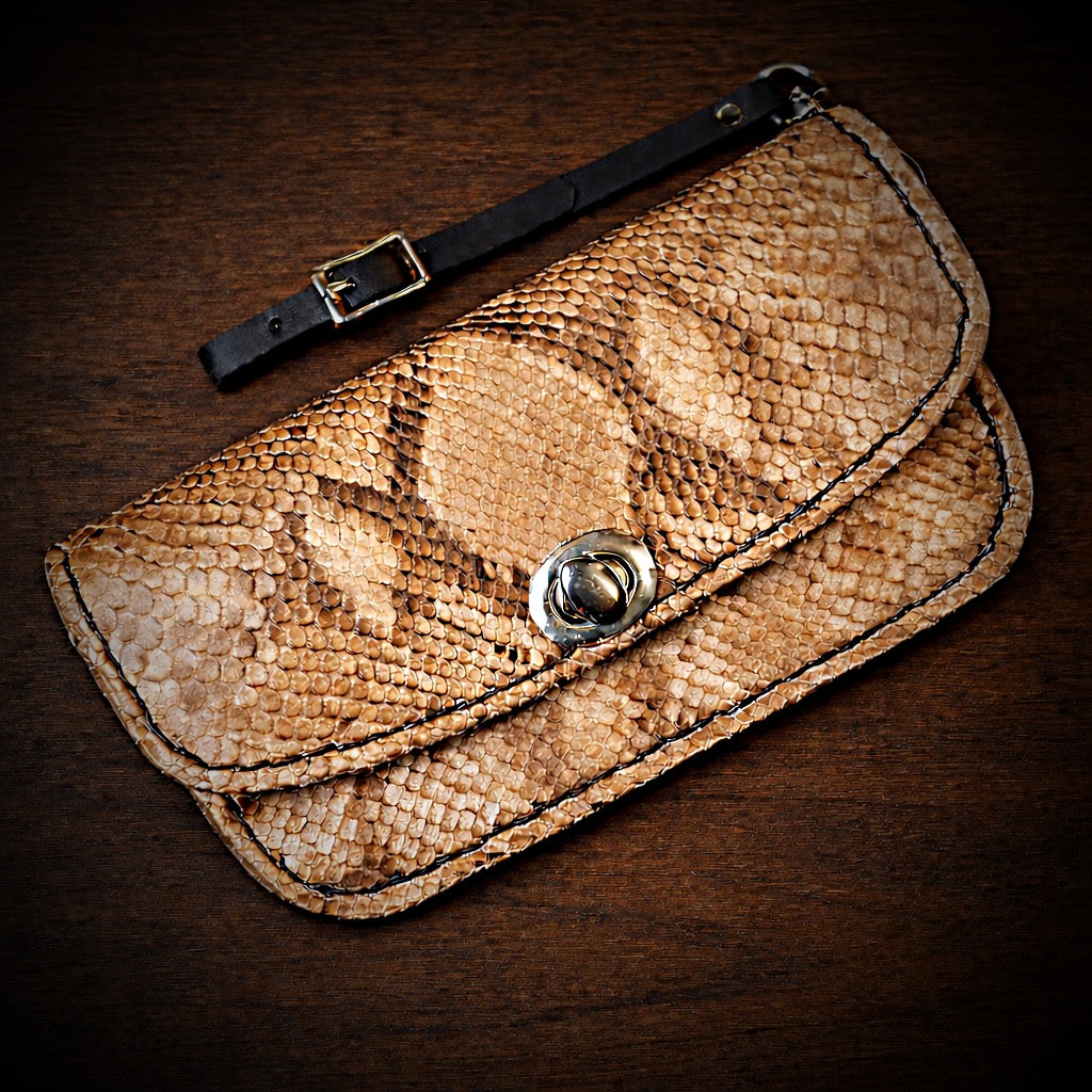 Clutch - Genuine Python, Tan