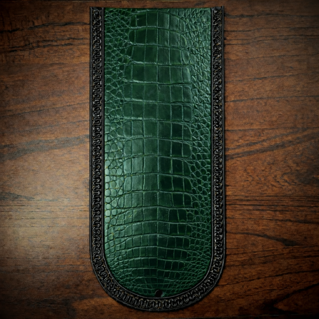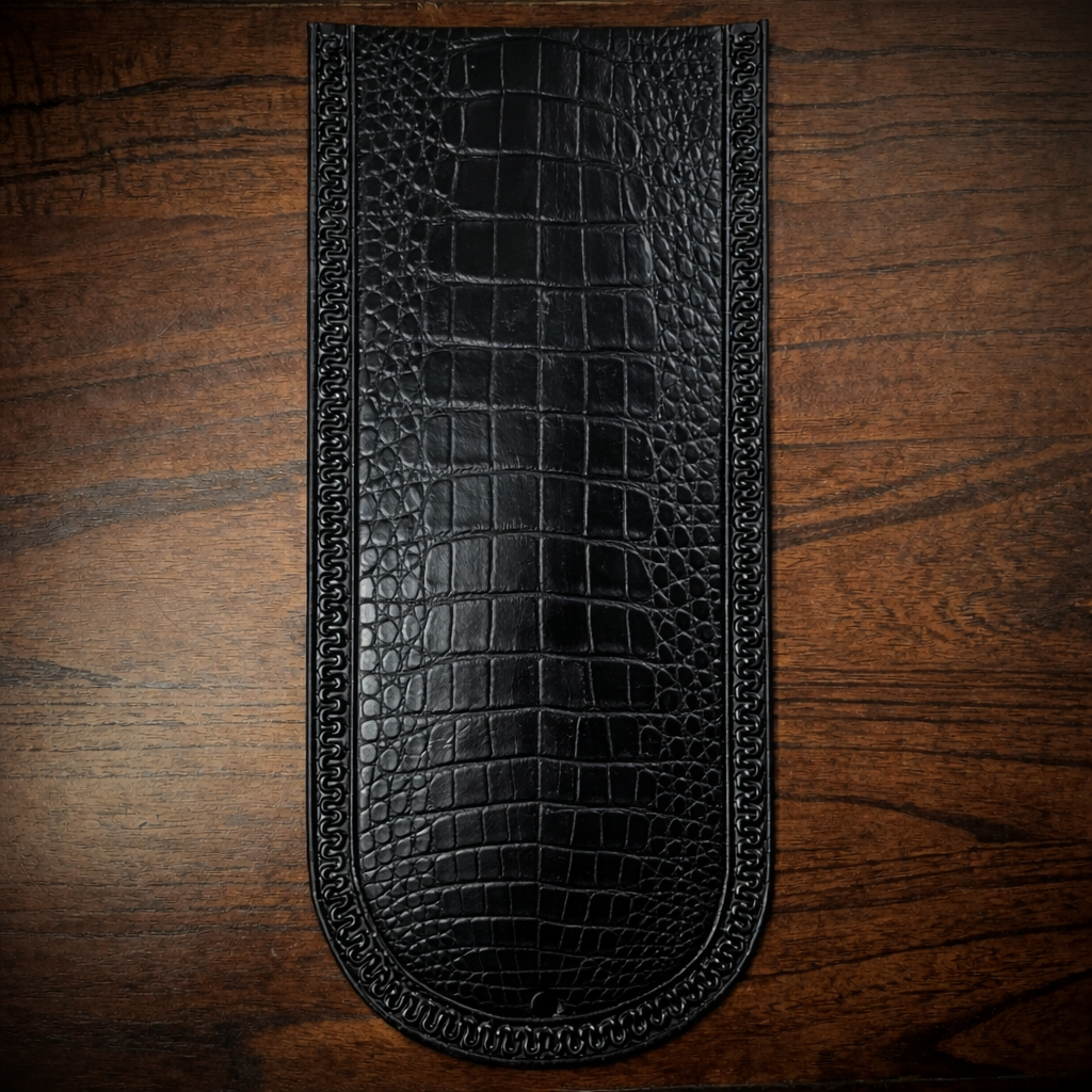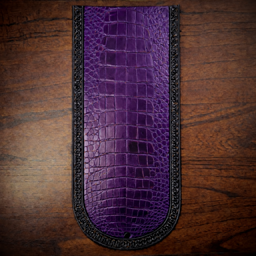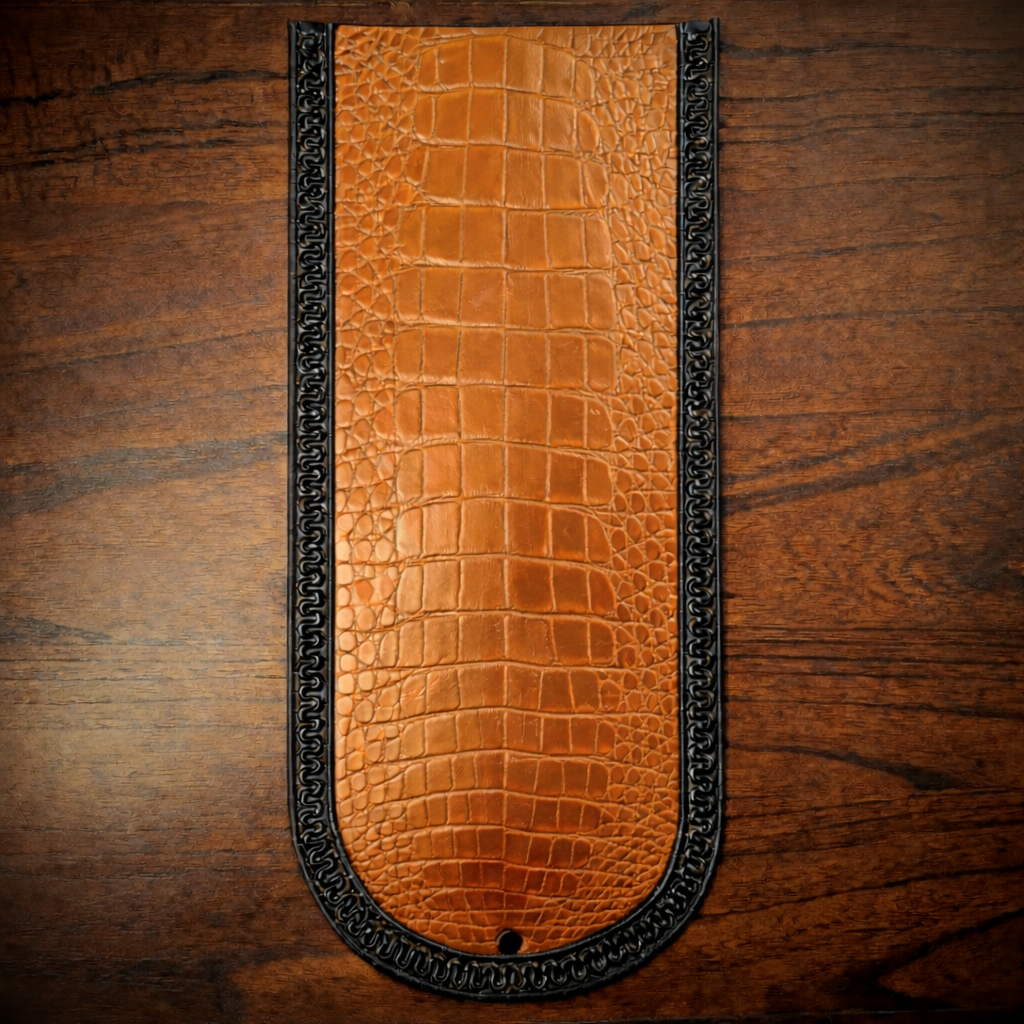 Made from 10oz weight thick leather. With alligator print leather I the color of your choice