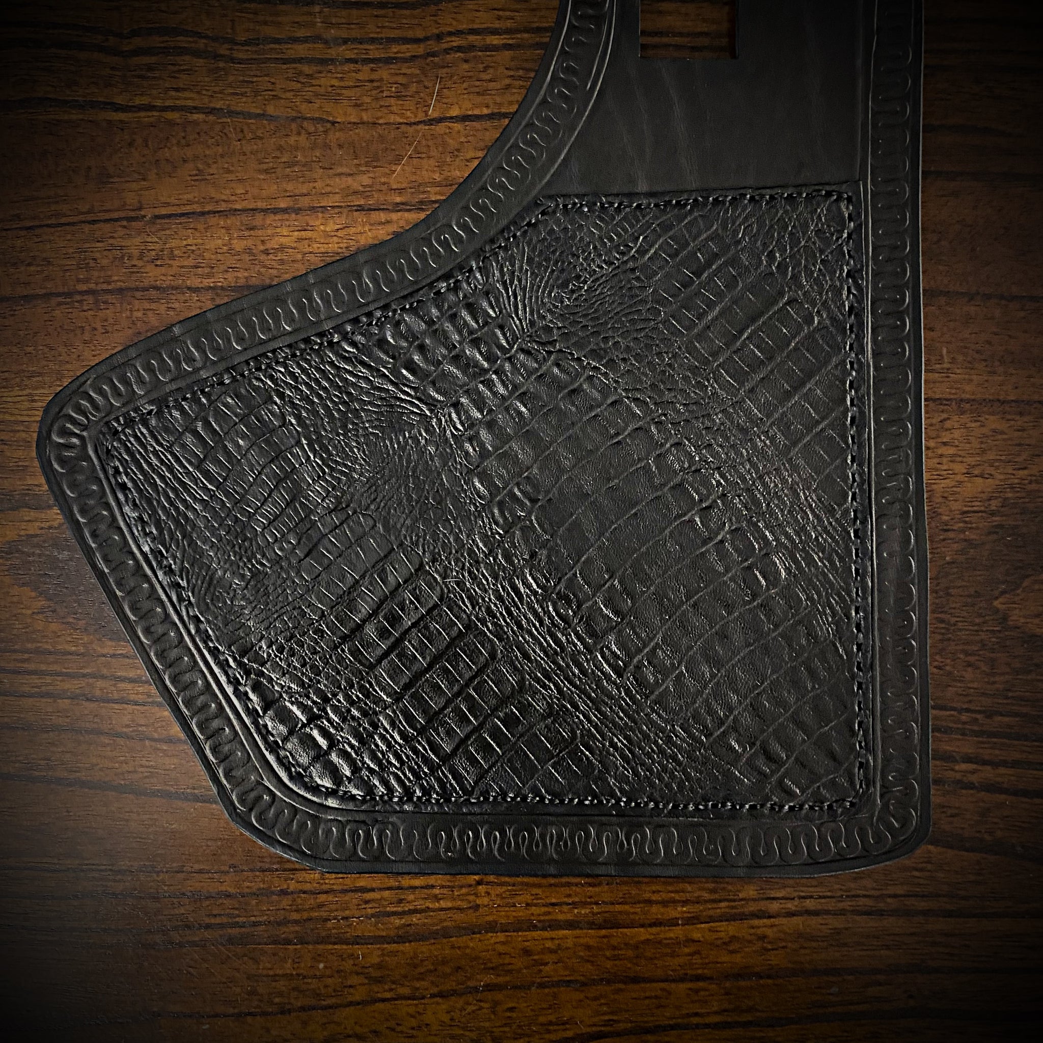 Made from 10oz thick, A grade, American made leather and alligator print leather.