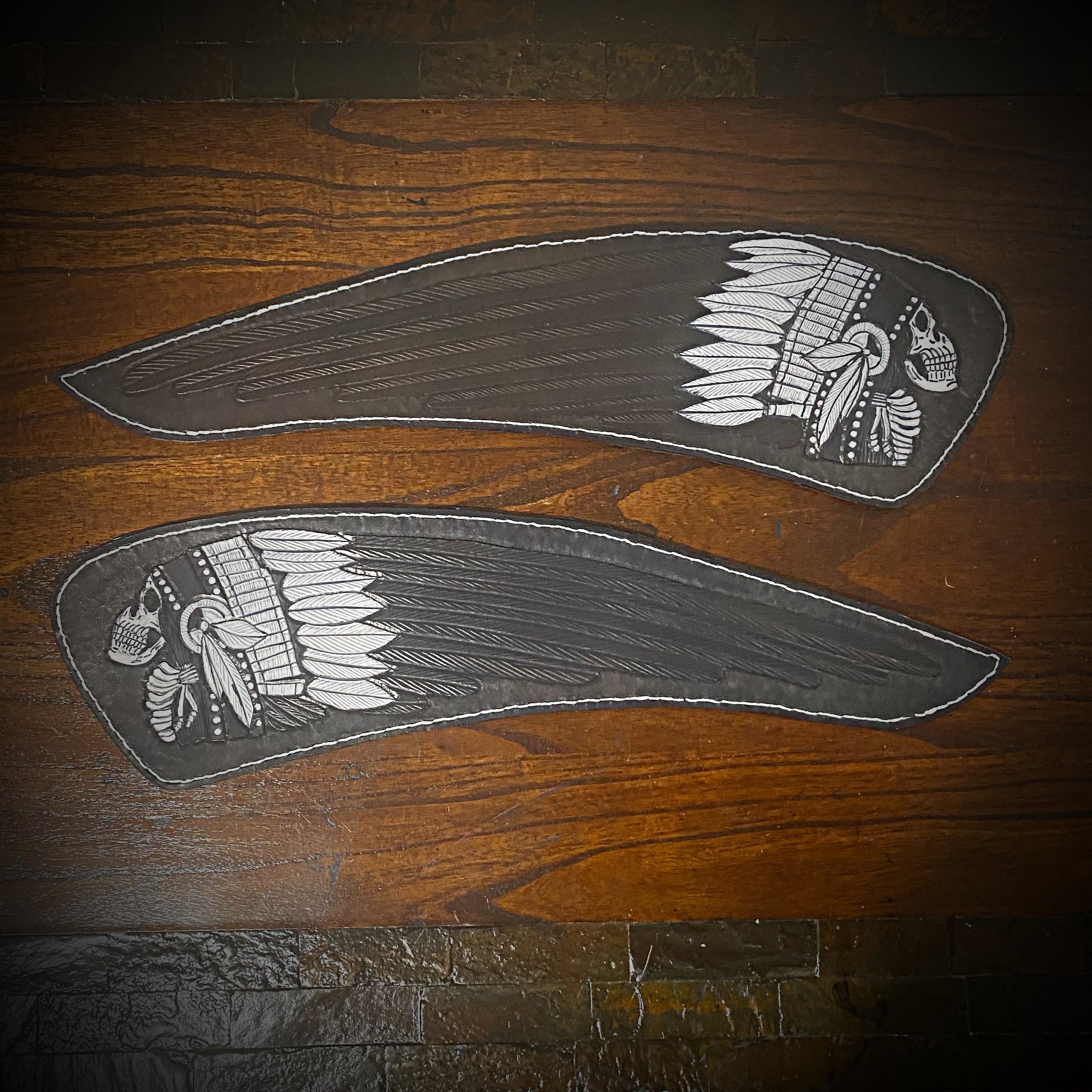 Made from 3-4oz leather. You get a set of two. They stick to your motorcycle using double sided 3M VBH tape rated for outdoor vehicle use.