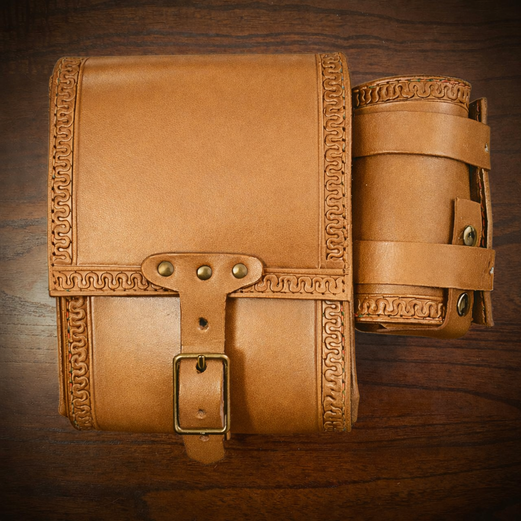 Rear Crash Bar Bag w/ Fuel Bottle/Cupholder - No Art, Indian Tan