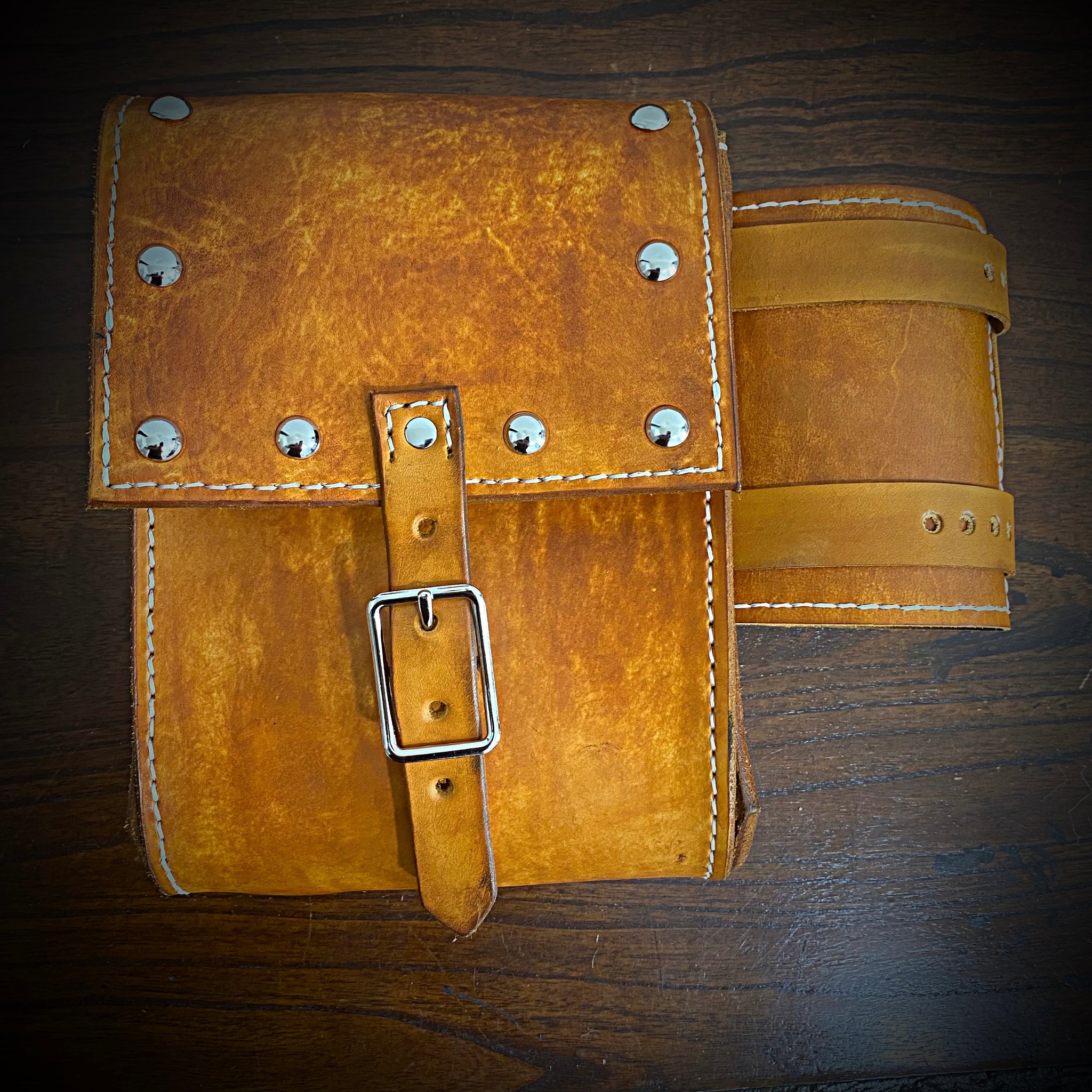Choose from a strap and buckle closure or lock and key for extra security. The buckle pictured has the add on quick release buckle behind it. If you do not order the add on the bag will come with our regular head stall buckle.