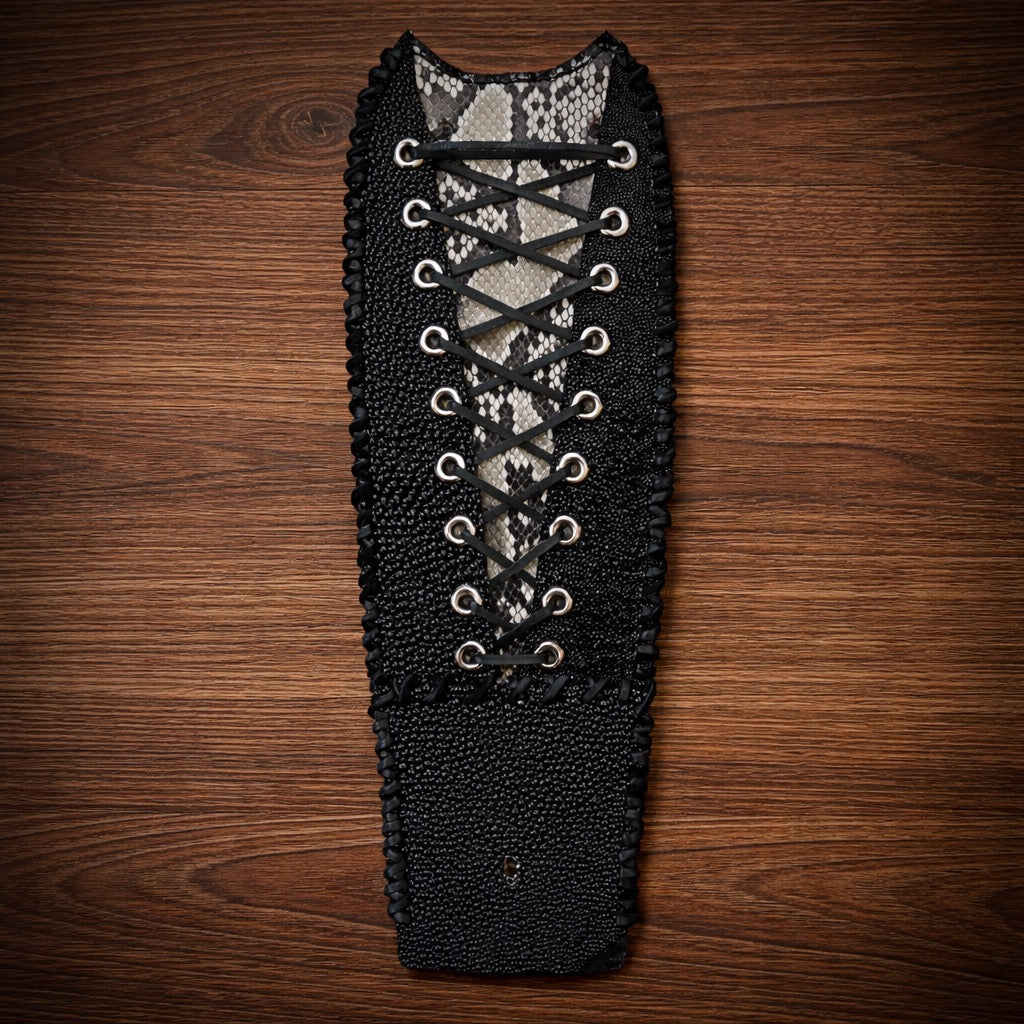Made from genuine sting ray and python. Different colors are available just contact me and I’ll see what I can find