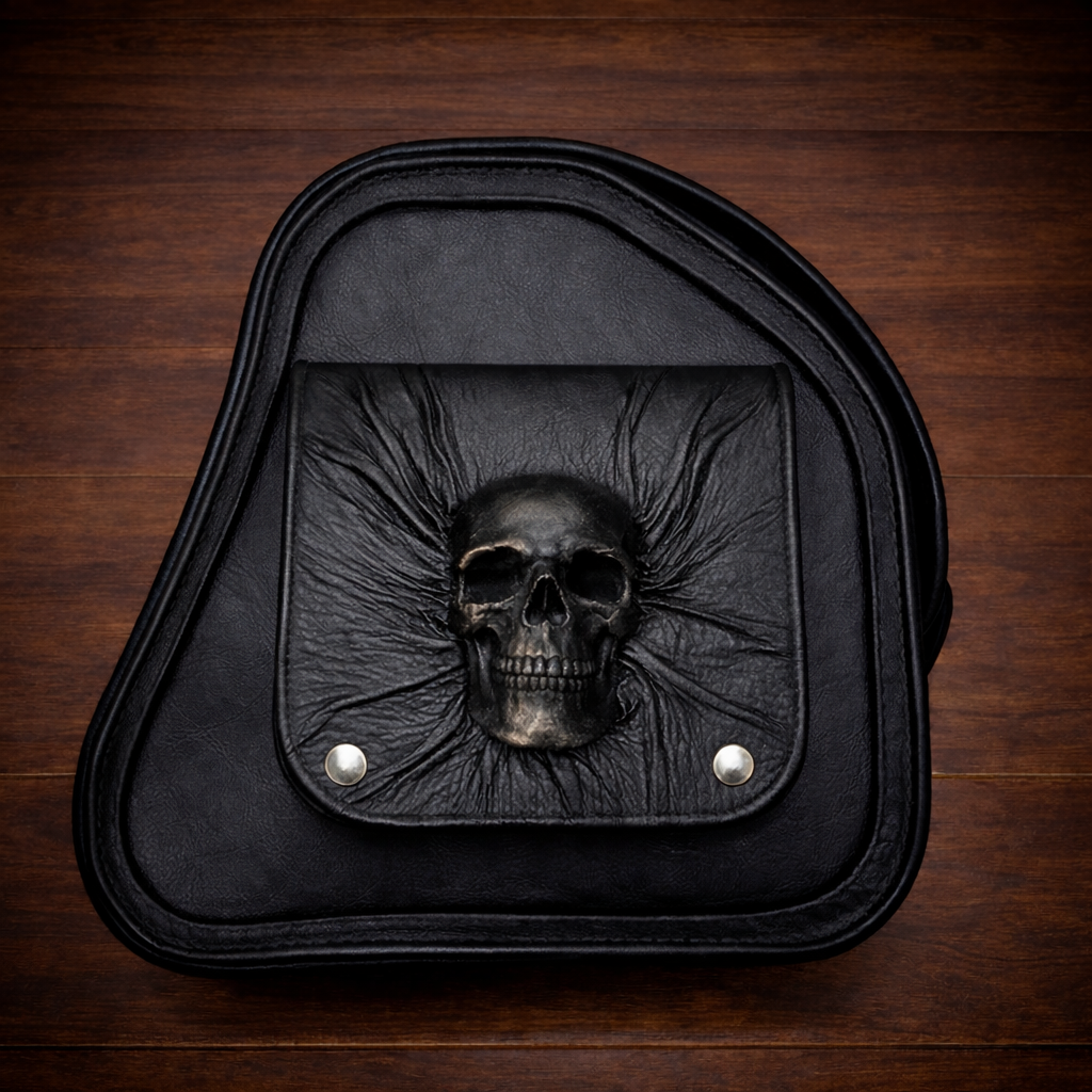 Images of bag are made by AI. The image of the heat shield is a product made in our shop to show how the skull will look.