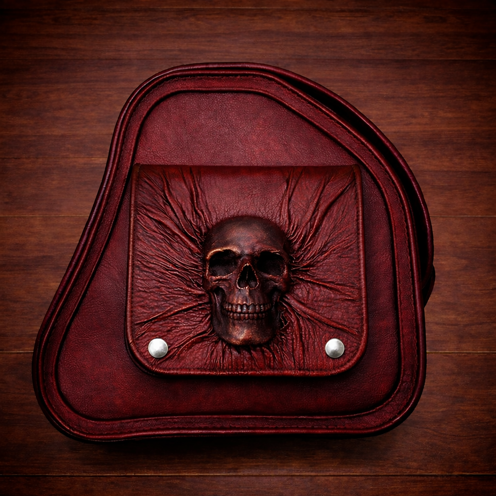 Images of bag are made by AI. The image of the heat shield is a product made in our shop to show how the skull will look.