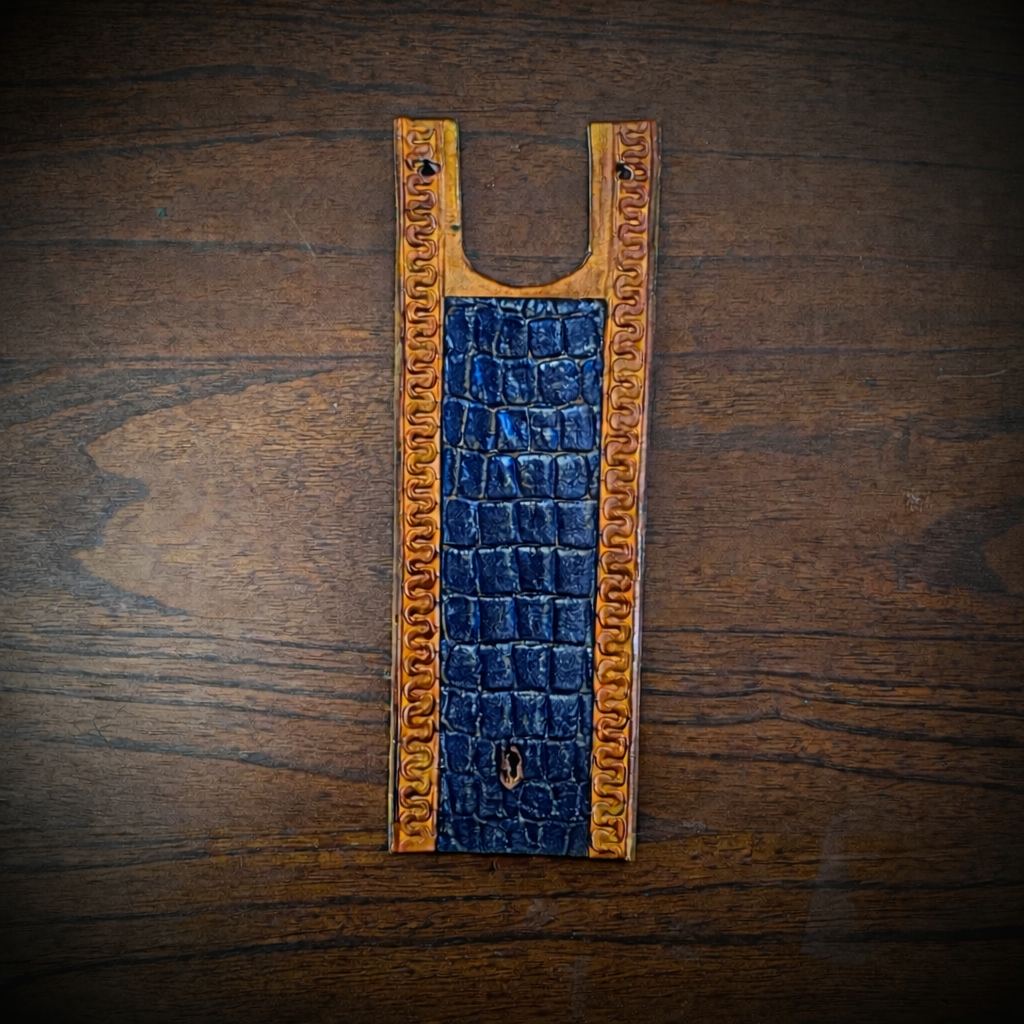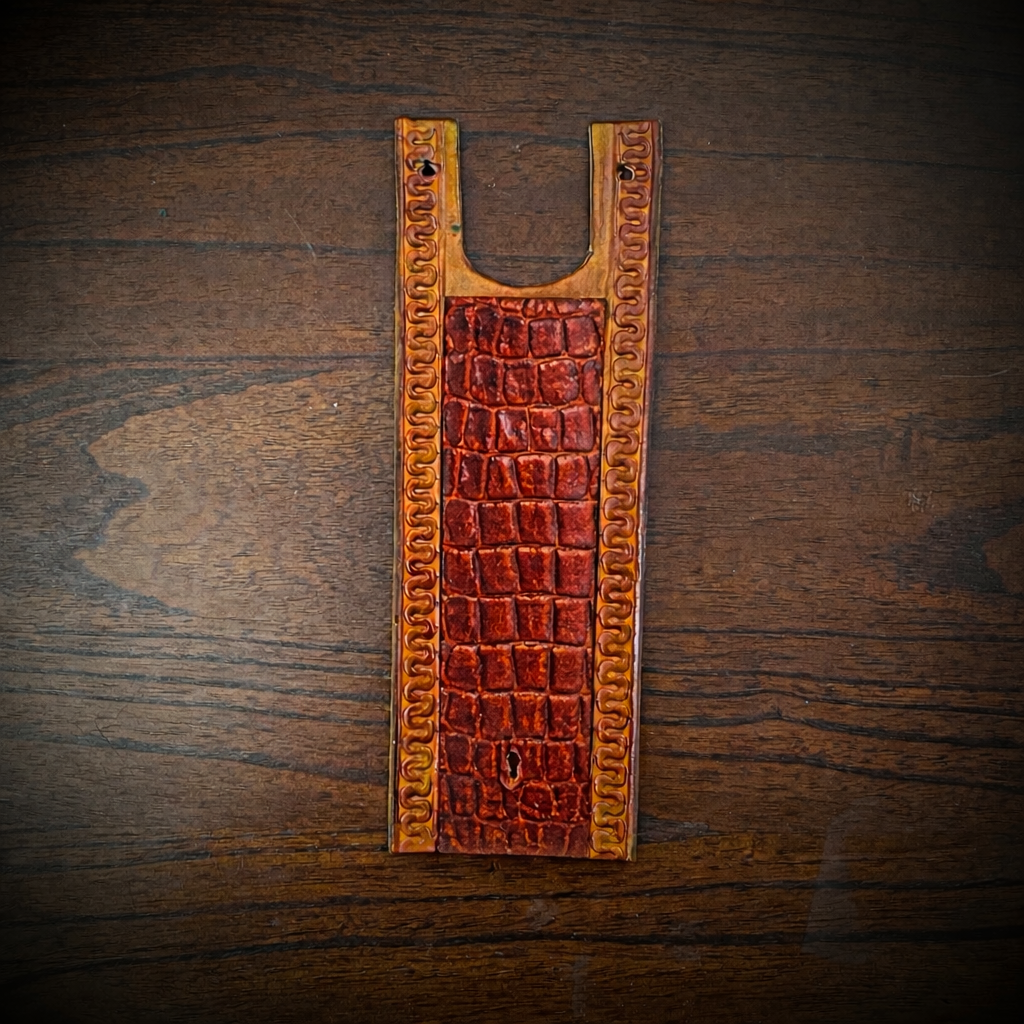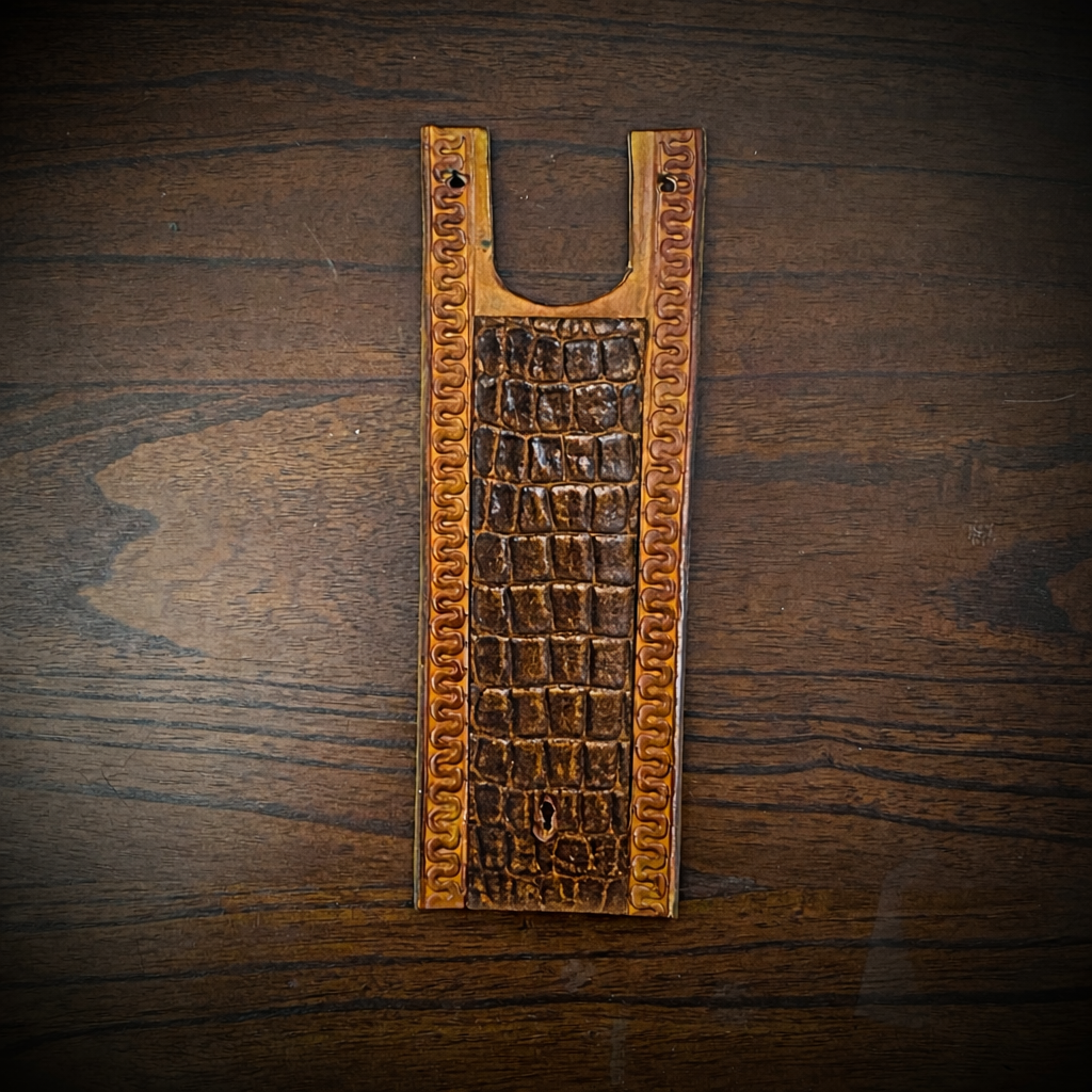 Tank Bib - Fits Indian Roadmaster, Chieftain, & Springfield - Alligator Print Over Indian Tan Leather