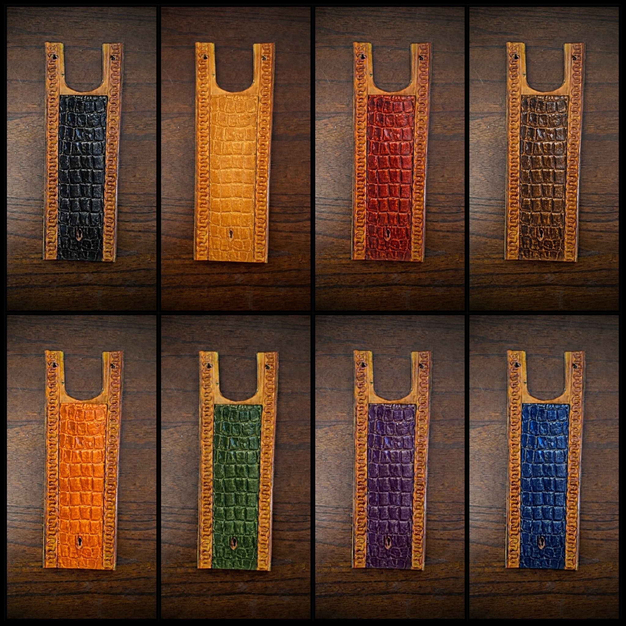 Made from 4-5oz weight thick leather with alligator print leather.