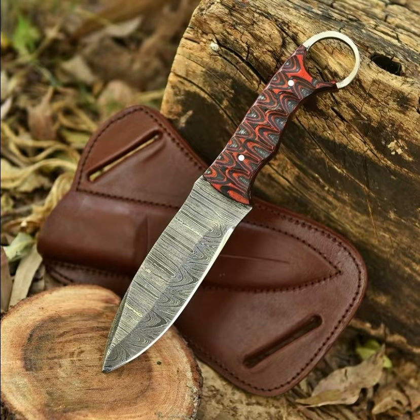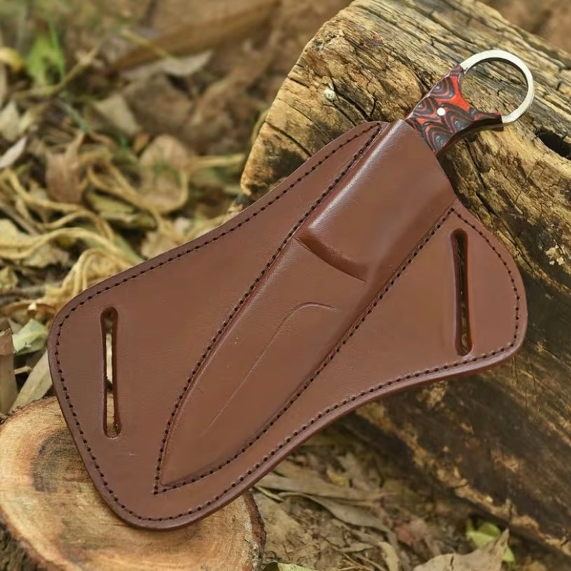 The overall design makes it suitable for hunting, camping, survival, and everyday outdoor tasks. It also comes with a durable leather sheath for safe carrying and storage.