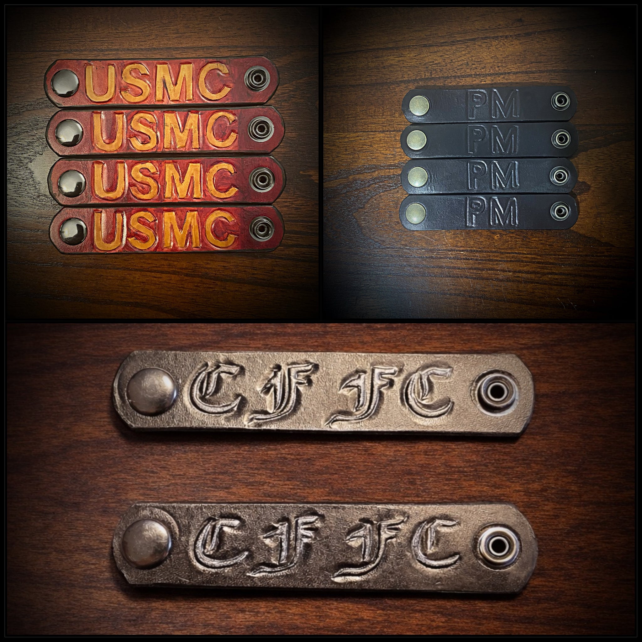 Made from 10-11oz Herman oak leather with button snaps. Sold as a set of 4.